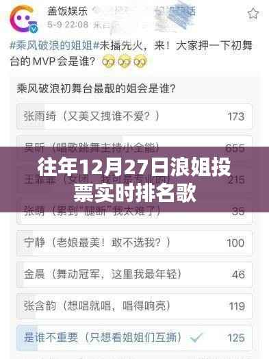 随着综艺节目的日益丰富,观众们的娱乐需求也日益多样化,在众多综艺节目中,《浪姐》以其独特的魅力吸引了众多观众的关注,每年的投票环节更是牵动着无数粉丝的心弦,尤其是往年12月27日的浪姐投票实时排名歌,更是成为众人关注的焦点,本文将带您回顾这一天的精彩瞬间,探寻背后的故事。